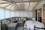 To the front of the property; the double garage has parking in front for two cars and a lawn area.